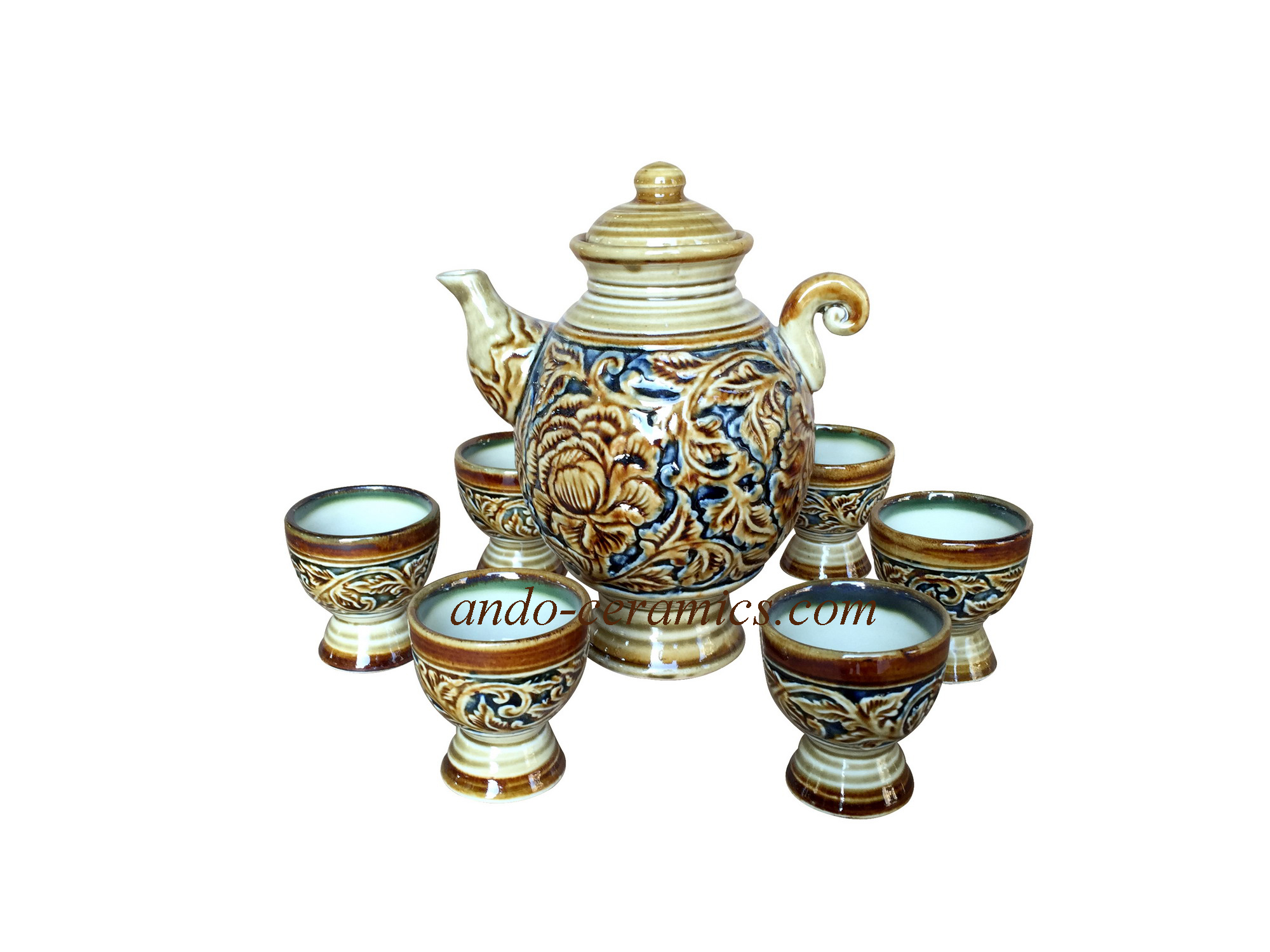 – Sản phẩm gồm có: 1 ấm + 4 chén + 1 khay tre
