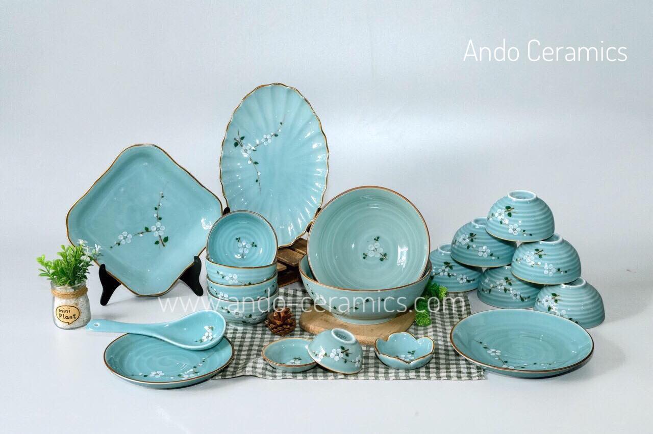 Bộ đồ ăn men gốm, gốm Bát Tràng.