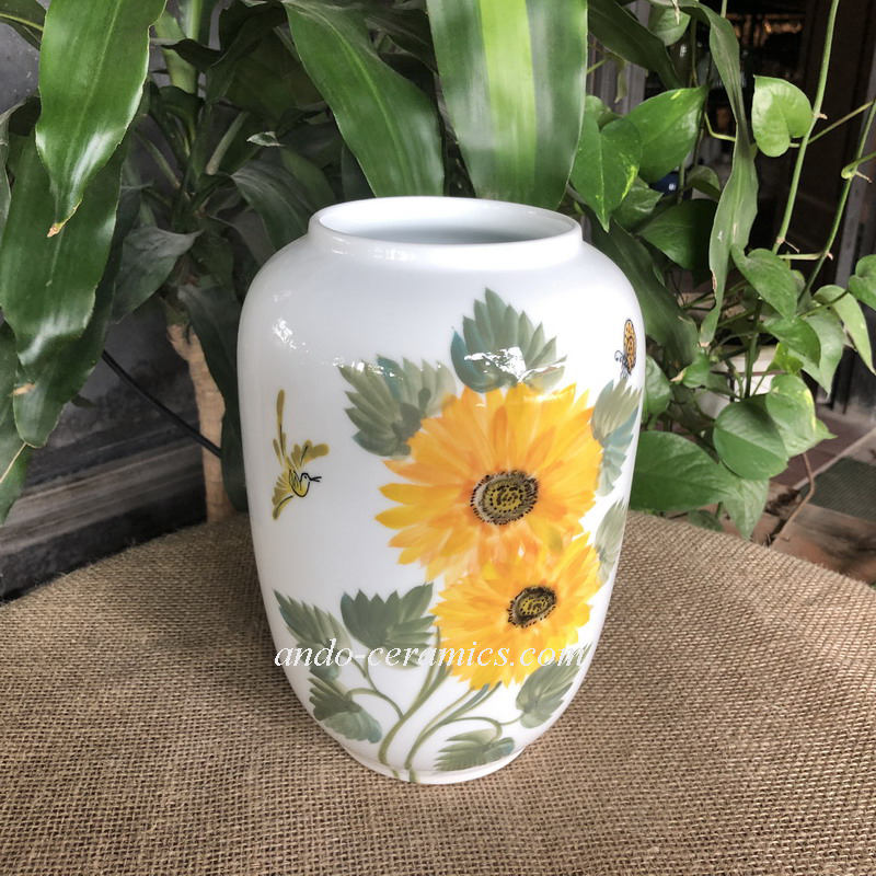 – Lọ hoa Sen bình – gốm sứ Bát Tràng, men trắng bóng vẽ hoa hướng dương